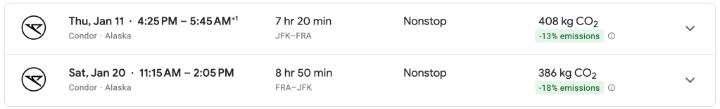 Let’s look at this roundtrip Condor option for $305 Thursday, January 11th and returning Saturday, January 20th.